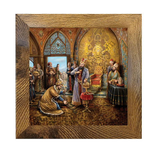 تصویر گذاری بر روی کاشی داستان بهرام گور و آزاده